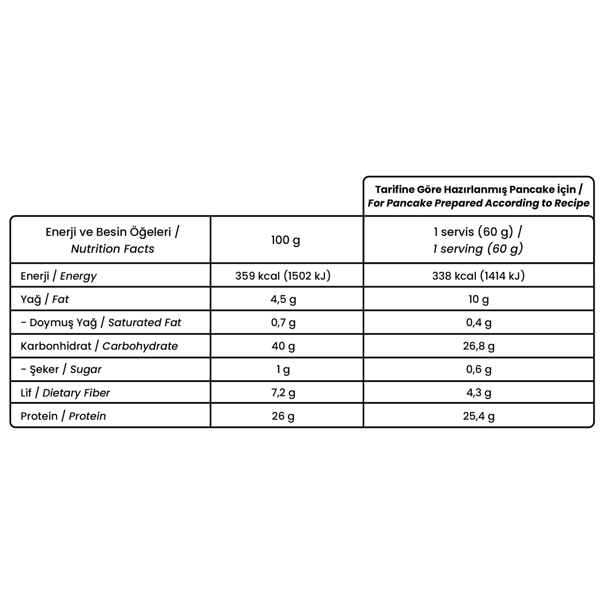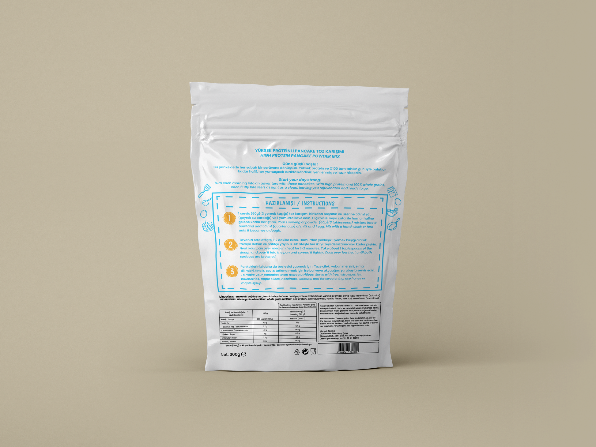 Yüksek Proteinli Pancake Karışımımız ile sağlık ve lezzeti bir araya getiriyoruz. Gününüze güçlü bir başlangıç yapmanız için ihtiyacınız olan yüksek protein, sıfır eklenmiş şeker ve tam tahılın besleyici değerlerini sunuyoruz. Bu karışım, kolay hazırlanışı ve doyurucu tadıyla, kahvaltılarınızı daha sağlıklı ve lezzetli hale getirmek için ideal. Her paket, 5 leziz porsiyon pancake yapmanıza yetecek kadar karışım içerir.